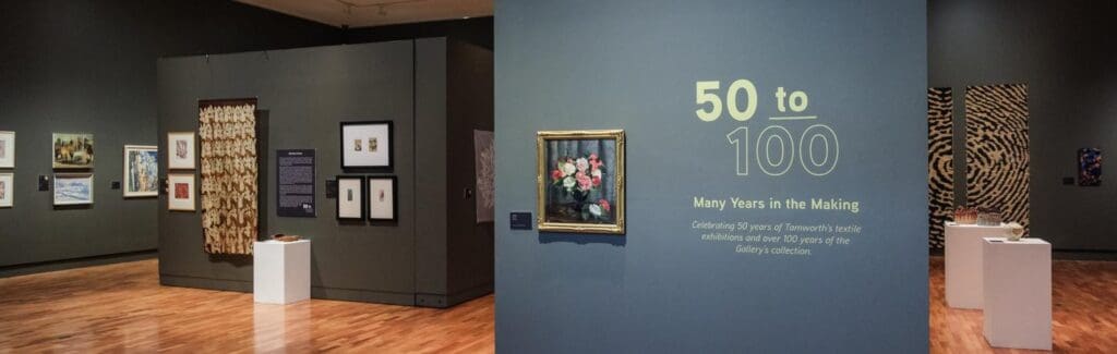 Join us for a free guided tour with Gallery Staff to explore the exhibition 50 to 100 – Many Years in the Making, as we delve into aspects of the Gallerys collection. An exhibition which celebrates 50 years of Tamworth’s textile exhibitions and over 100 years of the Gallery’s collection, this is an opportunity to accompany Gallery Staff as they explain the meaning, significance and stories behind both the exhibition and the collection.