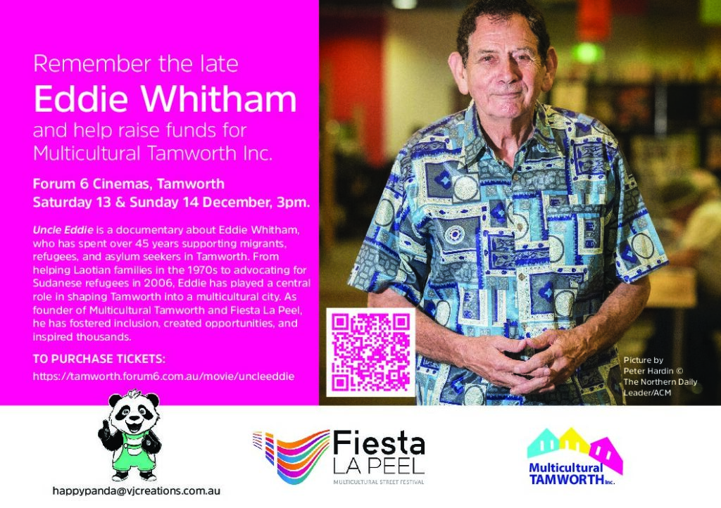 Uncle Eddie is a documentary about Eddie Whitham, who has spent over 45 years supporting migrants, refugees, and asylum seekers in Tamworth. From helping Laotian families in the 1970s to advocating for Sudanese refugees in 2006, Eddie has played a central role in shaping Tamworth into a multicultural city. As founder of Multicultural Tamworth and Fiesta La Peel, he has fostered inclusion, created opportunities, and inspired thousands. TO PURCHASE TICKETS: https://tamworth.forum6.com.au/movie/uncleeddie