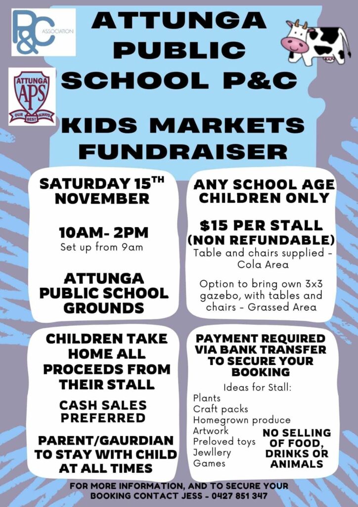 Calling all young entrepreneurs! Attunga Public School P&C is hosting a Kids Markets Fundraiser where YOUR children get to run their own stall!