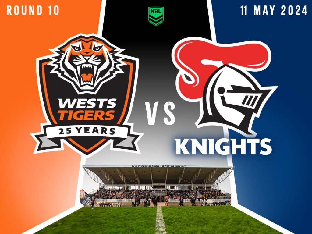 Brace yourselves for an epic showdown between the Wests Tigers and the Newcastle Knights in Round 10 of the NRL, right here at Scully Park, Tamworth!