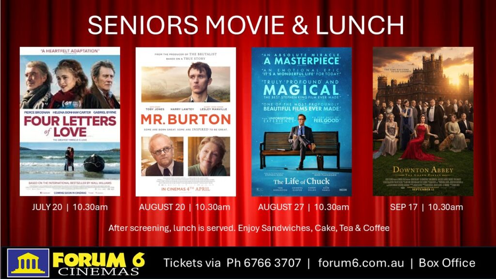 Enjoy an outing the movies and lunch. Start after the movie, enjoy sandwiches whilst mingling with others