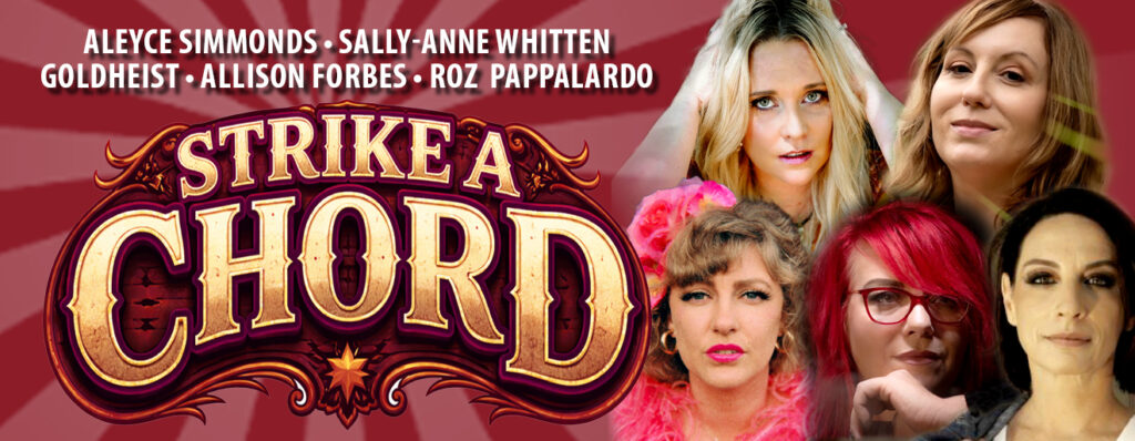 Featuring multi-award winning performers Aleyce Simmonds, Sally-Anne Whitten, Goldheist, Allison Forbes and Roz Pappalardo, Strike A Chord offers a rare opportunity to hear these remarkable artists share the stage, their songs and the stories behind them.
