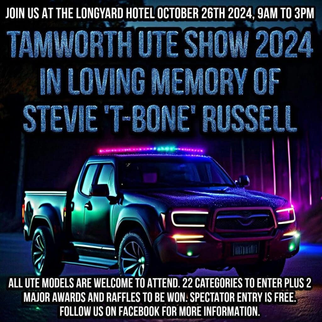 Join us on October 26th 2024 for the Tamworth Ute Show at the Longyard Hotel.