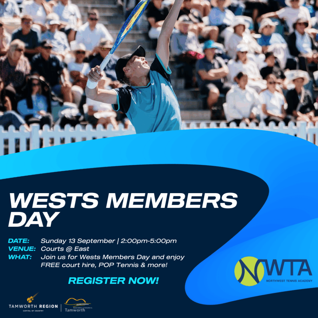 Mark your calendars for Sunday 13 September from 2pm to 5pm and join us at Courts @ East for an afternoon of tennis fun! Wests Members Day is the perfect chance to enjoy FREE court hire, POP Tennis and more, with something for players of all ages and skill levels. Donโ€™t miss this great community event โ€“ register now and get ready for a fantastic day on court with Northwest Tennis Academy!